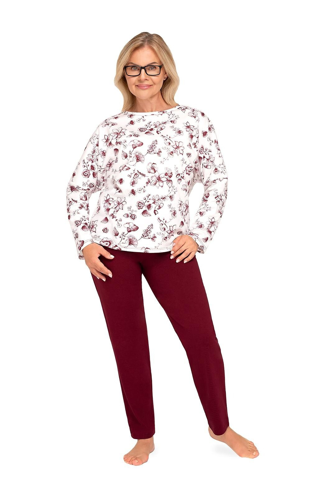 Dámske pyžamo - vysokokvalitná bavlna - vzorované tričko s dlhým rukávom - okrúhly výstrih - dlhé jednofarebné nohavice na doplnenie súboru - balené v polyetylénovom vrecku Zloženie: 100 % bavlna