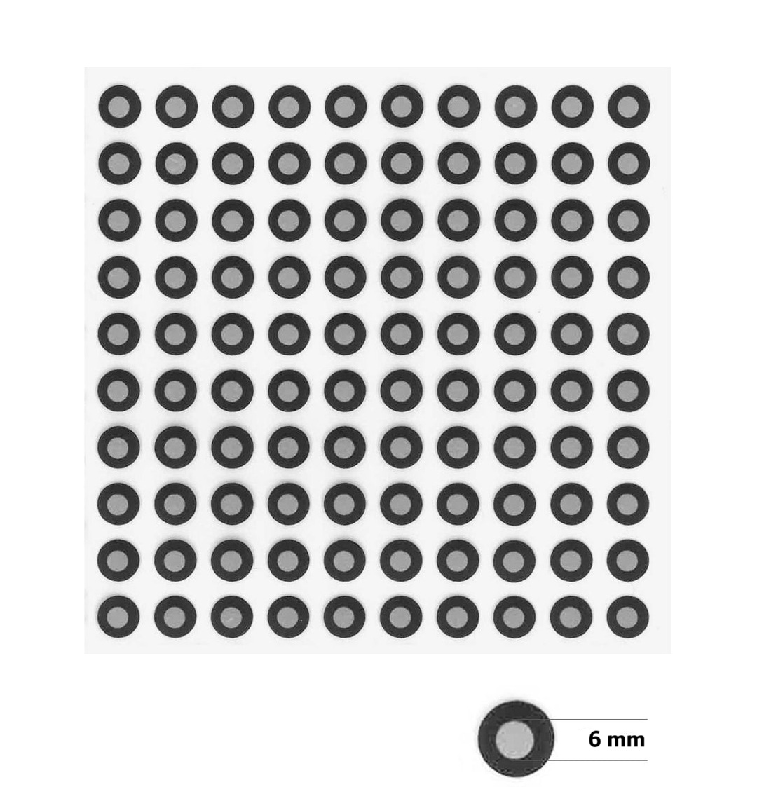 Predmety s pravidelnou štruktúrou alebo lesklým povrchom, ako sú kovové diely (napríklad automobilové súčiastky), sa skenujú veľmi ťažko. Tieto značkovacie terčíky poskytujú skeneru „oporný bod“ na efektívne spracovanie tvarov a obrysov, čo zabezpečuje lepšie zarovnanie naskenovaných dát a menej chýb vo výslednej 3D sieti. Určené na skenovanie stredne veľkých a veľkých objektov Zvyšujú presnosť a stabilitu skenovania Kompatibilné so všetkými 3D skenermi bez ohľadu na výrobcu alebo technológiu Vysokokontrastný povrch s reflexným stredom Jednoduché odlepenie a nalepenie (odporúčame použiť pinzetu)