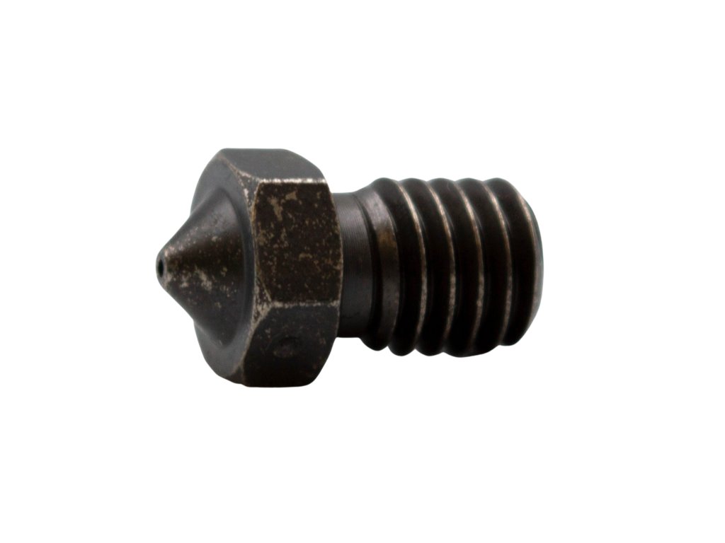 Kvalitná tryska kalená s priemerom 0,8 mm a závitom M6 vhodná na tlač 1,75 mm široké struny špeciálne určená pre abrazívne materiály ako sú vlákna plnené karbónovými časticami, sklenými vláknami alebo drevom. Tryska má na čelnej strane plôšku, pomocou ktorej je možné perfektné vyhladenie hornej pohľadovej vrstvy modelu spoločne s funkciou ironing vo Slicer (tzv. Žehlenie filamentu) dosiahnete výrazne lepšieho vzhľadu povrchu tlačeného modelu. Tryska je časť tlačovej hlavy (extruderu), ktorá určuje ako detailné bude Váš výtlačok. Použitím trysky s menším otvorom dosiahnete jemnejšieho tlače, ale zároveň výrazne rastie celkový čas tlače. Najpoužívanejšie je tryska s priemerom 0,4 mm. Po naskrutkovanie trysky na hotend, odporúčame ohriať tlačovú hlavu na teplotu približne 285 ° C (prípadne menej, ak túto teploty vaša tlačiareň neumožňuje) a trysku za tepla dotiahnite, aby nedochádzalo k netesnostiam. Tryska je vhodná napr. Pre hotend typu E3D V6, teda pre tlačiarne Elegant3D Printer 2, Prusa i3 a všetky ďalšie, ktoré majú závit pre trysku veľkosti M6.