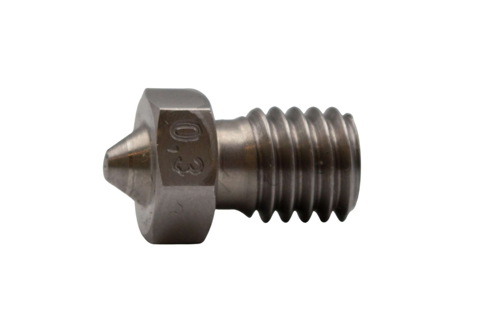 Kvalitná tvrdená tryska 0,30 mm so závitom M6 vhodná k 3D tlači abrazívnych materiálov - WOOD, CFJet, ale inej filament s karbónem, Metal filamenty (bronz, mosadz) apod. Pre zmenu alebo zlepšenie vlastností môžu byť do filamentu pridávaný prímesi. Niektoré z nich sú abrazívne, ide napr. o častice dreva, bambusu, mosadzi, bronzu, karbónu a ďalšie. Tie by mosadznou trysku mohly obrusovať a tým by sa veľmi rýchlo zničila.V takom prípade je na mieste použiť trysku z tvrdenej ocele. Po naskrutkovanie trysky na hotend, odporúčame ohriať tlačovú hlavu na pracovnú teplotu (približne 230°C) a trysku za tepla dotiahnuť, aby nedochádzalo k netesnostiam. Tryska je vhodná napr. pre 3D tlačiarne Elegant3D Printer 2, Prusa i3 a všetky dalšie, ktoré majú závit pre trysku veľkosti M6.Odporúčania pre tlač: Tvrdená tryska uvoľňuje teplo o niečo rýchlejšie ako štandardné mosadzná. Z tohto dôvodu je spravidla nutné ľahko zvýšiť teplotu podložky aj teplotu tlači o približne 5°C.