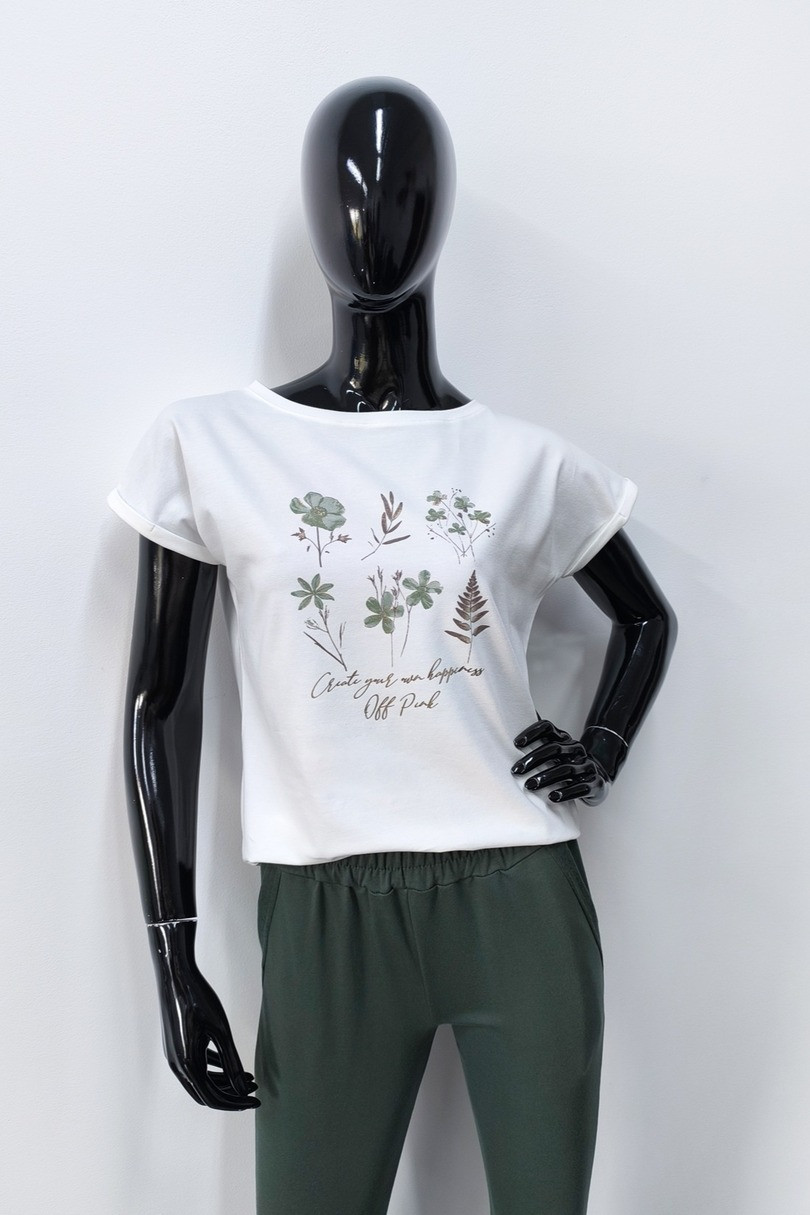 Vyniknite jemným pôvabom! Dámska blúzka OFF PINK spája každodenné pohodlie s módnym spracovaním. Krátke rukávy zakončené štýlovým nariasením jej dodávajú uvoľnený, ležérny charakter. Zadná časť blúzky je jemne predĺžená a zaoblená, čo jej dodáva štíhlejšiu siluetu. Ozdobná potlač s trblietavými prvkami dodáva ženský nádych. Mäkký, elastický materiál s prevahou bavlny zaručuje celodenné pohodlie. Blúzka navrhnutá a ušitá v Poľsku - stavte na kvalitu a podporte miestne značky.