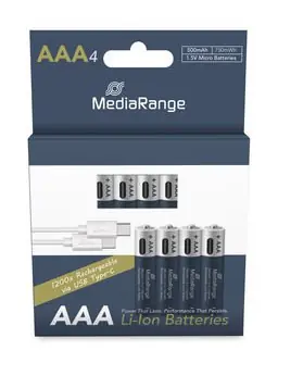 MediaRange nabíjací USB-C Li ION batéria Micro AAA / 500mAh / 1.5V / 4ks (MRBAT160)