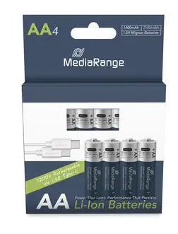 MediaRange nabíjací USB-C Li- ION batéria Mignon AA / 1400mAh / 1.5V / 4ks
