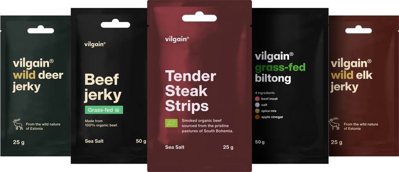 Vilgain Grass-Fed Hovädzie jerky BIO – 5× morská soľ 50 g