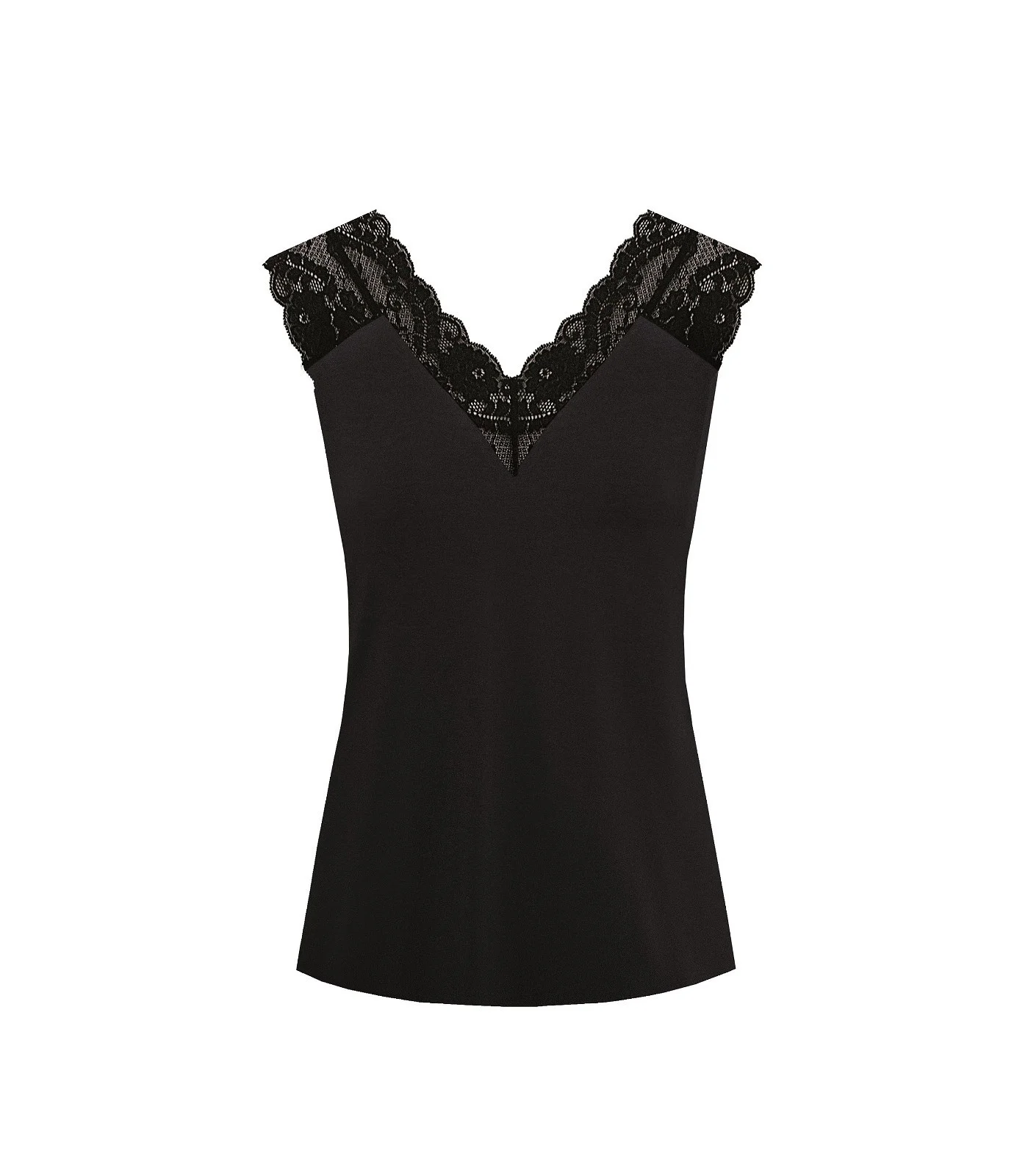 Dámska blúzka/košele- z mäkkej a jemnej viskózy- na širšom, krajkovom ramennom popruhu- výstrih do VZloženie: 70% viskóza, 14% polyamid, 8% elastan, 8% ostatné