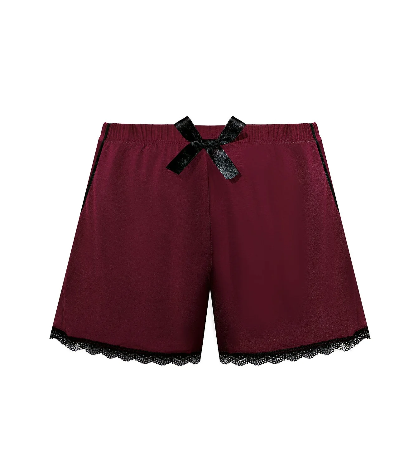 Pyžamové šortky- z mäkkej, hladkej viskózy- nohy zakončené pruhom čiernej čipky- bočné vrecká zdobené čiernym lemovaním- pohodlný elastický pás s ozdobnou saténovou mašľouZloženie: 70% viskóza, 14% polyamid, 8% elastan, 8% ostatné vlákna