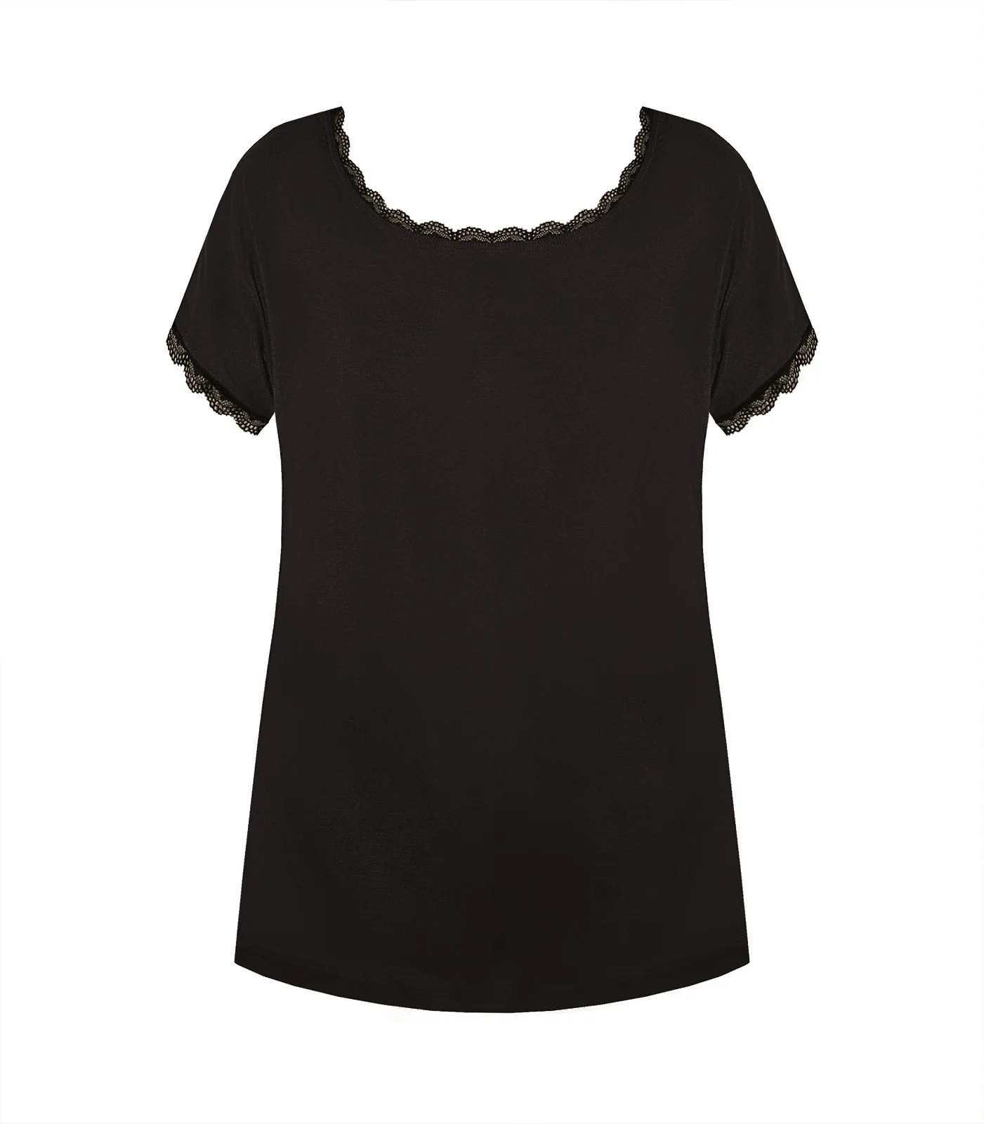 Dámska blúzka/košele- z jemnej a mäkkej viskózy- krátky rukáv typu "motýlik"- okrúhly výstrih- rukávy a výstrih zdobené čipkou- hladkýZloženie: 70% viskóza, 14% polyamid, 8% elastan, 8% ostatné