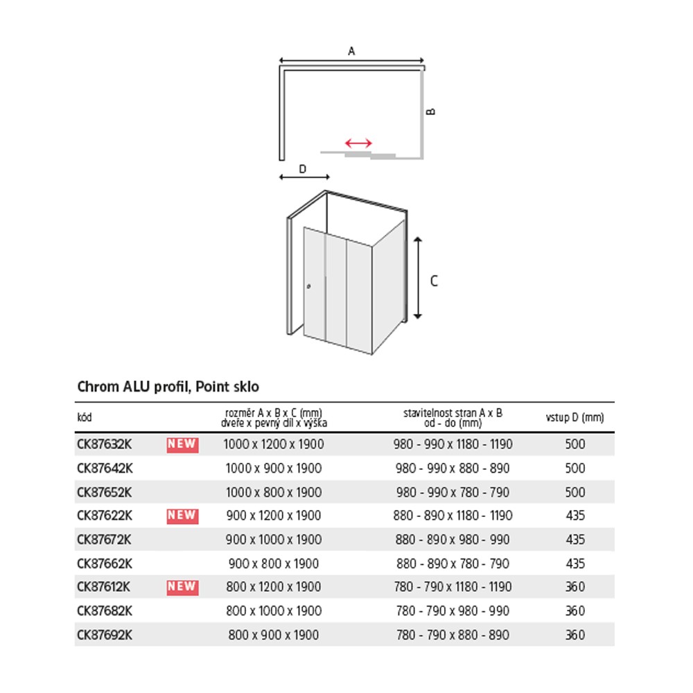 Lima je rad sprchových kútov Mereo, ktorá navodí pocit čistého dizajnu v každej modernej kúpeľni. Rovné hladké plochy, čisté línie a ostré hrany profilov umocňujú pocit exkluzivity. Kvalitné sklenené výplne s bezpečnostným sklom. Tento kút ponúkame v nepriehľadnom prevedení so sklom Point, ktoré navodia lepší pocit intimity pri sprchovaní.Ľahké zatvorenie a tesnosť zaisťujú stieracie a silikónové lišty, opatrené na vstupnej časti magnetom, nejedná sa však o hermeticky uzavretý výrobok.Ľahké otváranie a nastavenie zabezpečujú nastaviteľné ložiskové pojazdy (dvojkolieskami). Jednoduchú údržbu a možnosť vyčistiť aj tá najmenej prístupné miesta kúta potom zaisťujú spodné pojazdy s pružinovým mechanizmom, pre ľahké vysadenie posuvné časti z rámu.Za zmienku potom iste stojí inovatívny systém montáže pomocou CLICK systému. Tento systém montáže znižuje počet operácií, nutných pre zostavenie celého kúta a odbúrava niektoré zložitejšie operácie, ako je vŕtanie do profilov. Aj ďalšie časti kúta sú dodávané s ohľadom na maximálnu rýchlosť montáže svojpomocne.Dvere sa pri otváraní aj zatváraní pohybujú plynulo, všetky súbežne a nenarážajú do seba.V ceně kúta nie je zahrnutá cena vaničky. Ean: 8596462566915