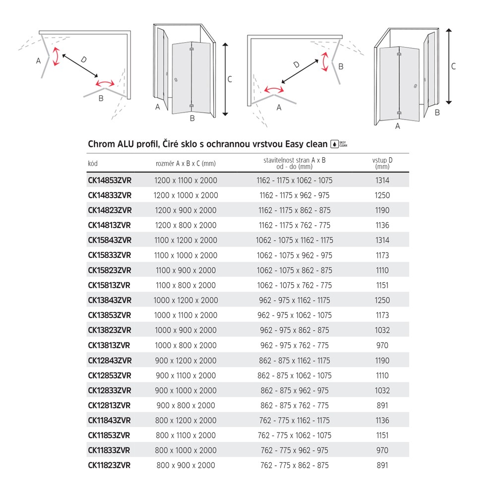 Domov Nábytok Kúpeľňa Sprchy a príslušenstvo Sprchovacie kúty Mereo Sprchovací kút, Novea, obdĺžnik, zalamovací, 80x90 cm, chróm ALU, sklo Číre CK11823ZVR
