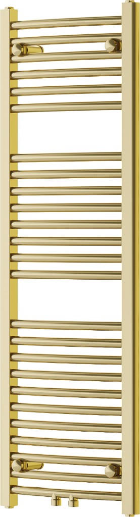 Technické dáta: Výška: 1200 mm Šírka: 400 mm Hĺbka: 44 mm Rozstup pripojenia: - 35 cm (bočné) alebo 5 cm (stred) Farba: Zlatá Materiál: oceľ Hmotnosť: 7,21 kg Reakcia na oheň: A1 Prevádzková teplota: max 95 °C Maximálny pracovný tlak: 0,6 MPa Vykurovací výkon: - 75/65/20 °C - 349 W Spojenie: - 2xG ½″ stred - 4xG ½″ zhora a zdola na pravej alebo ľavej strane Možnosť inštalácie ohrievača Vysoko kvalitný, odolný náter odolný proti korózii Sada obsahuje: závesy, montážnu sadu, záslepky a odvzdušňovací ventil (GT) Ean: 5905315071378