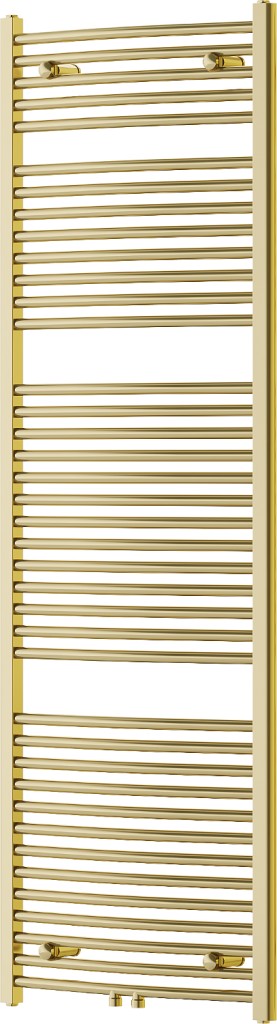 Technické dáta: Výška: 1800 mm Šírka: 600 mm Hĺbka: 56 mm Rozstup pripojenia: - 55 cm (bočné) alebo 5 cm (stred) Farba: Zlatá Materiál: oceľ Hmotnosť: 14,47 kg Reakcia na oheň: A1 Prevádzková teplota: max 95 °C Maximálny pracovný tlak: 0,6 MPa Vykurovací výkon: - 75/65/20 °C - 757 W Spojenie: - 2xG ½″ stred - 4xG ½″ zhora a zdola na pravej alebo ľavej strane Možnosť inštalácie ohrievača Vysoko kvalitný, odolný náter odolný proti korózii Sada obsahuje: závesy, montážnu sadu, záslepky a odvzdušňovací ventil (GT) Ean: 5905315071521