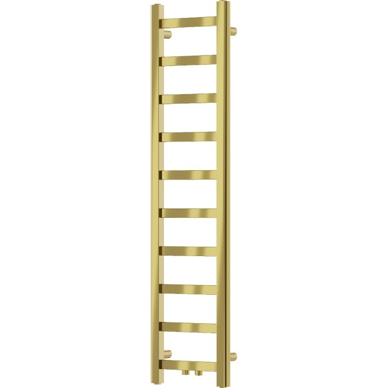 Technické údaje: Výška: 1200 mm Šírka: 300 mm Hĺbka: 40 mm Rozstup pripojenia: - 25 cm (dole) alebo 5 cm (uprostred) Farba: Zlatá Materiál: Oceľ Hmotnosť: 5,32 kg Reakcia na oheň: A1 Prevádzková teplota: max. 95 °C Maximálny pracovný tlak: 0,6 MPa Vykurovací výkon: - 75/65/20 °C - 189 W Pripojenie: - 2xG ½″ stred - 4xG ½″ zhora a zdola na pravej alebo ľavej strane Možnosť inštalácie kúrenia Vysoko kvalitný, odolný a nehrdzavejúci náter farby Súčasťou balenia: zavesenie, montážna sada, záslepky a odvzdušňovací ventil(GT) Ean: 5905315966308