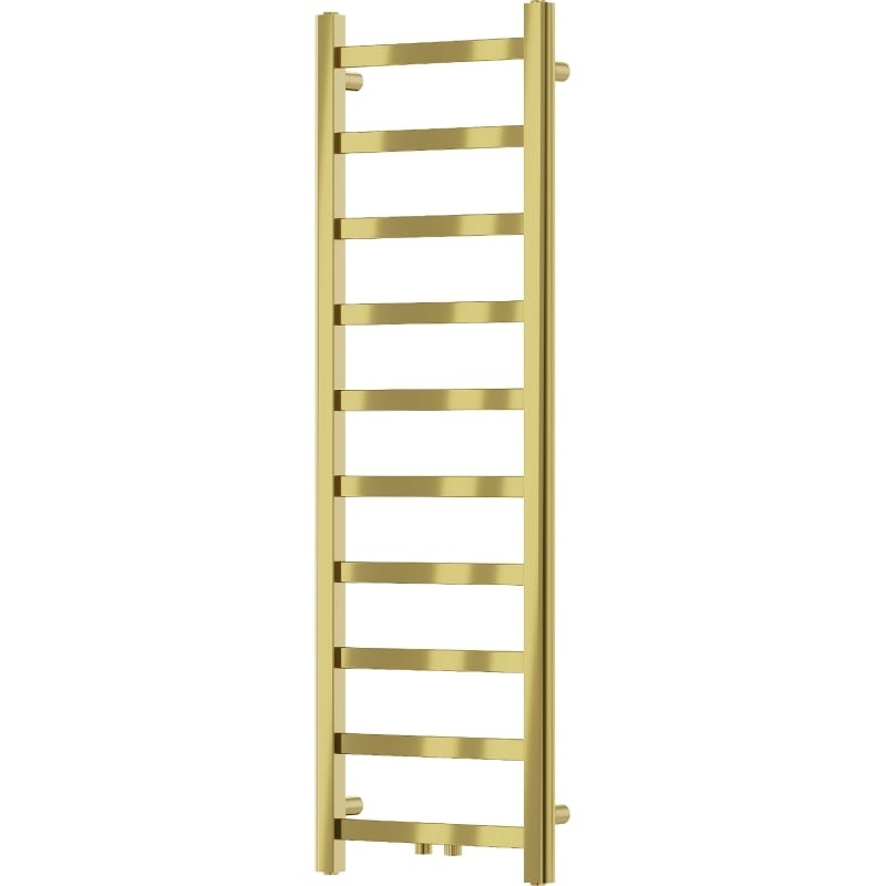 Technické údaje: Výška: 1200 mm Šírka: 400 mm Hĺbka: 40 mm Rozstup pripojenia: - 35 cm (dole) alebo 5 cm (uprostred) Farba: Zlatá Materiál: Oceľ Hmotnosť: 5,99 kg Reakcia na oheň: A1 Prevádzková teplota: max. 95 °C Maximálny pracovný tlak: 0,6 MPa Vykurovací výkon: - 75/65/20 °C - 220 W Pripojenie: - 2xG ½″ stred - 4xG ½″ zhora a zdola na pravej alebo ľavej strane Možnosť inštalácie kúrenia Vysoko kvalitný, odolný a nehrdzavejúci náter farby Súčasťou balenia: zavesenie, montážna sada, záslepky a odvzdušňovací ventil(GT) Ean: 5905315966476