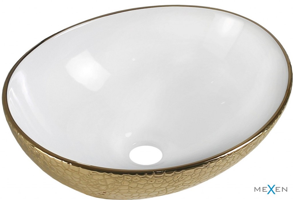 MEXEN - Elza umývadlo na dosku 40 x 33, biela/zlato dekor 21014008