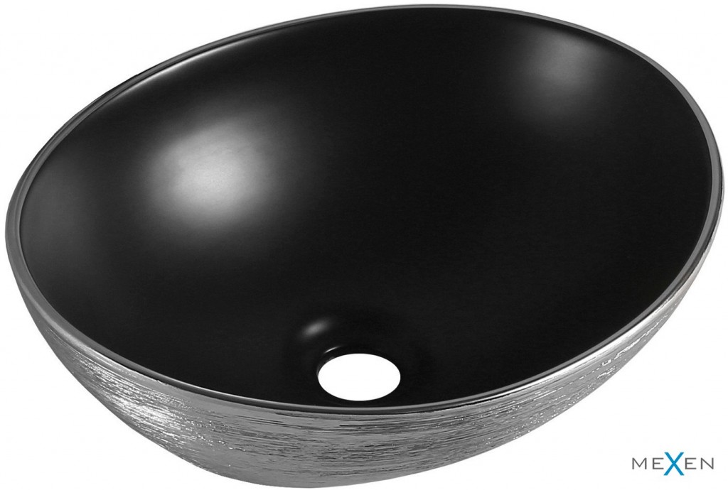 MEXEN - Elza umývadlo na dosku 40 x 33, čierna mat/strieborná dekor 21014023