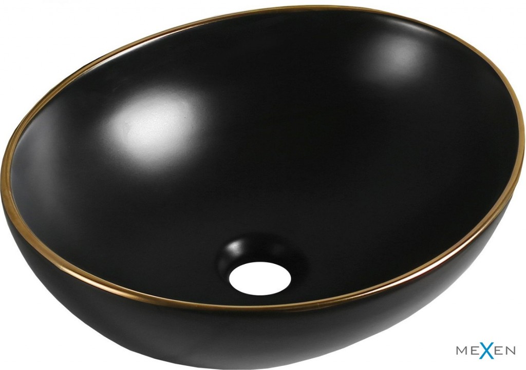 MEXEN - Elza umývadlo na dosku 40 x 33, čierna mat/zlatá hrana 1014025
