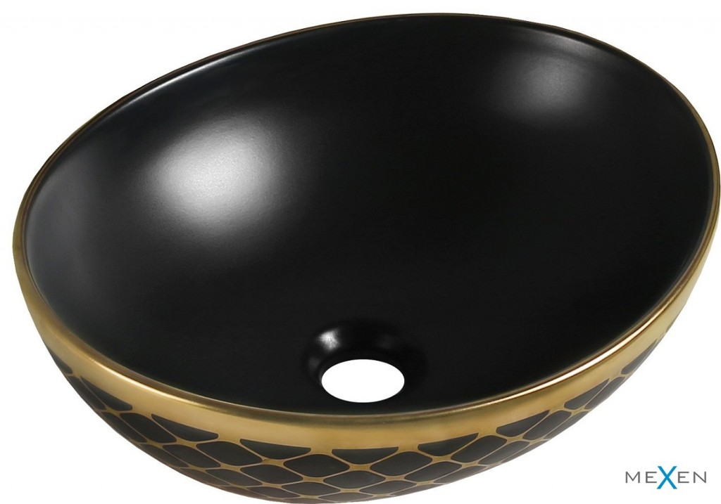 MEXEN - Elza umývadlo na dosku 40 x 33, čierna mat/zlato dekor 21014029
