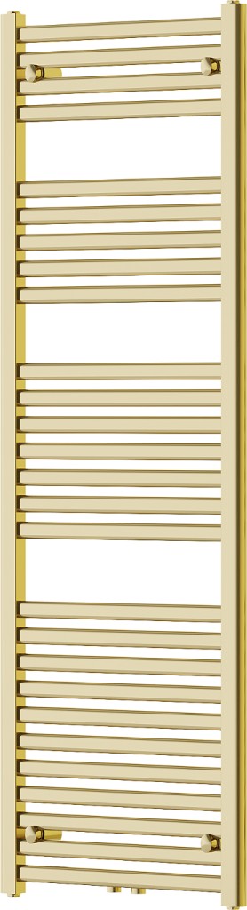 Technické dáta: Výška: 1500 mm Šírka: 500 mm Hĺbka: 30 mm Rozstup pripojenia: - 45 cm (bočné) alebo 5 cm (stred) Farba: Zlatá Materiál: oceľ Hmotnosť: 11,39 kg Reakcia na oheň: A1 Prevádzková teplota: max 95 °C Maximálny pracovný tlak: 0,6 MPa Vykurovací výkon: - 75/65/20 °C - 555 W Spojenie: - 2xG ½″ stred - 4xG ½″ zhora a zdola na pravej alebo ľavej strane Možnosť inštalácie ohrievača Vysoko kvalitný, odolný náter odolný proti korózii Sada obsahuje: závesy, montážnu sadu, záslepky a odvzdušňovací ventil (GT) Ean: 5905315071910