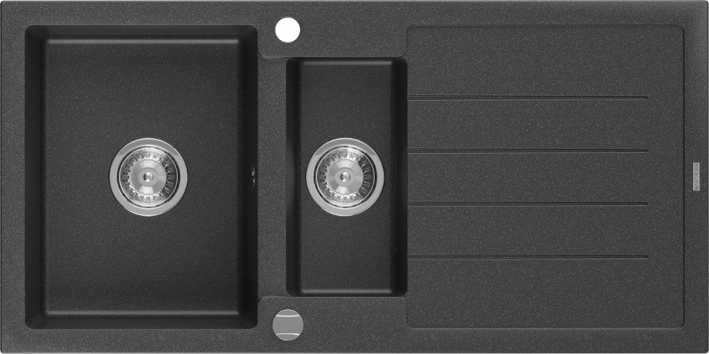 Špecifikácia produktu: Rozmer: 1000x500x200 mm Hĺbka komory: 190 mm (väčšia), 115 mm (menšia) Rozmery komory: 430x330 mm (väčšie), 340x170 mm (menšie) Priemer odtoku: ø90 mm Typ: 1,5-miska s odkvapkávačom Typ: Zapustené do pracovnej dosky Materiál: žula Farba: Škvrnitá čierna Povrchová úprava sifónu: Chrome Prepadový otvor: Áno Otvor pre batériu: Áno Vrátane automatického sifónu Vysoká odolnosť proti poškriabaniu a zmene farby Odolnosť proti tepelným šokom Povrch pre ľahké čistenie (GT) Ean: 5907709194854