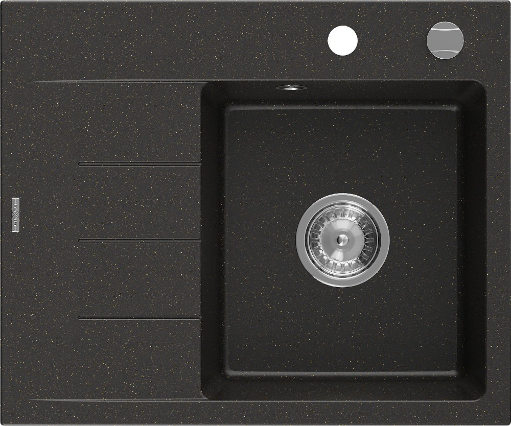 Špecifikácia produktu: Rozmer: 600x500x190 mm Hĺbka komory: 190 mm Rozmery komory: 375x335 mm Priemer odtoku: ø90 mm Typ: 1-miska s krátkym odkvapkávačom Typ: Zapustený do pracovnej dosky, pravý Materiál: žula Farba: čierna / zlatá metalíza Povrchová úprava sifónu: Chrome Prepadový otvor: Áno Otvor pre batériu: Áno Vrátane automatického sifónu Vysoká odolnosť proti poškriabaniu a zmene farby Odolnosť proti tepelným šokom Povrch pre ľahké čistenie Jeden dodatočný vyfrézovaný otvor na samodierovanie ø35(GT) Ean: 5905315949165