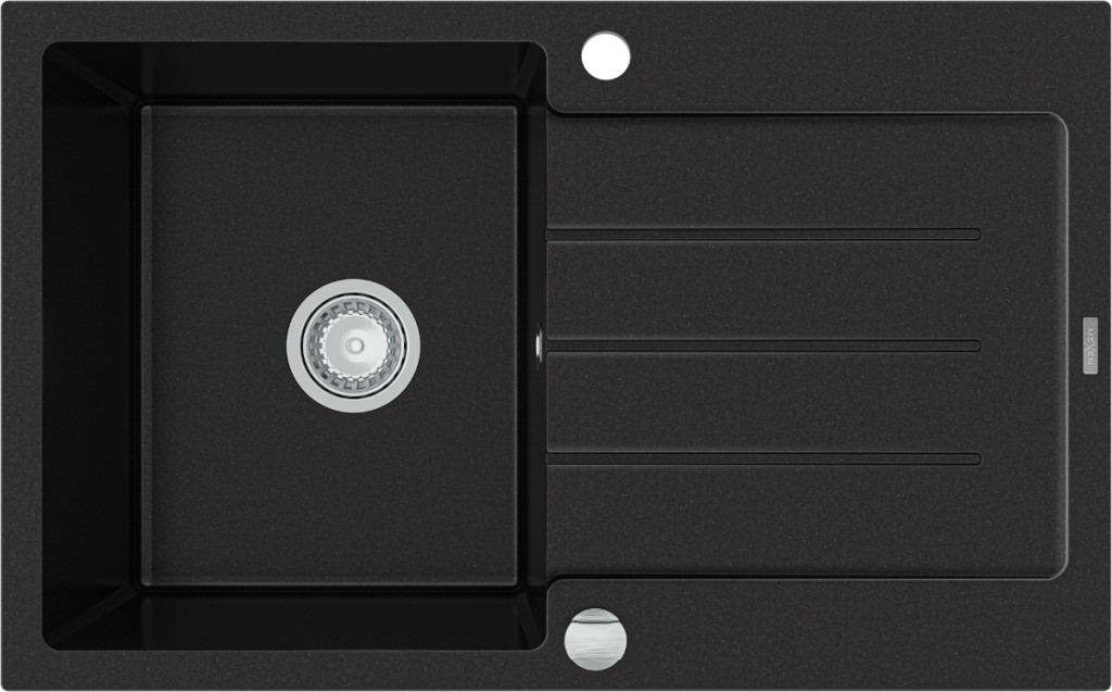 Technické dáta: Veľkosť: 795x495x200 mm Hĺbka komory: 200 mm Rozmery komory: 440x360 mm Priemer odtoku: ø90 mm Typ: 1 miska s odkvapkávačom Typ: Zapustené do dosky stola čierna farba Materiál: žula Prepadový otvor: Áno Závit: Áno Vrátane automatického sifónu Vysoká odolnosť proti poškriabaniu a zafarbenie Odolnosť proti tepelným šokom Ľahko čistiteľný povrch Dva ďalšie vyfrézované otvory pre vlastné dierovanie ø35 (GT) Ean: 5907709194700