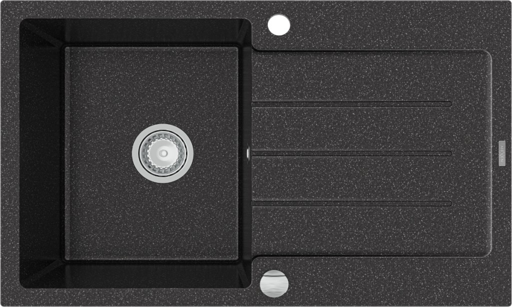 Technické dáta: Veľkosť: 795x495x200 mm Hĺbka komory: 200 mm Rozmery komory: 440x360 mm Priemer odtoku: ø90 mm Typ: 1 miska s odkvapkávačom Typ: Zapustené do dosky stola Farba: čierna škvrnitá Materiál: žula Prepadový otvor: Áno Závit: Áno Vrátane automatického sifónu Vysoká odolnosť proti poškriabaniu a zafarbenie Odolnosť proti tepelným šokom Ľahko čistiteľný povrch Dva ďalšie vyfrézované otvory pre vlastné dierovanie ø35 (GT) Ean: 5907709194694