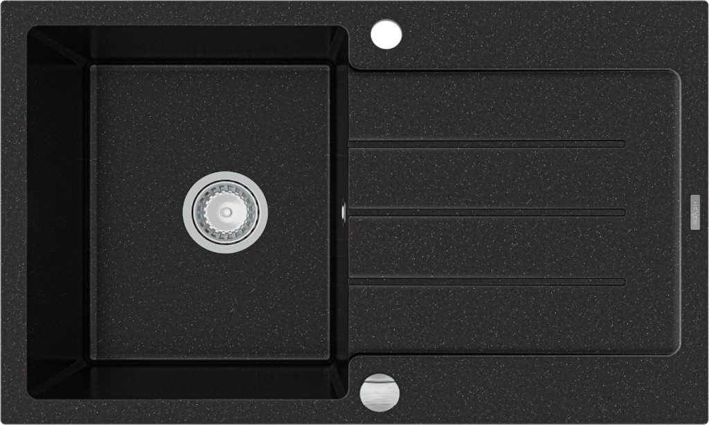 Technické dáta: Veľkosť: 795x495x200 mm Hĺbka komory: 200 mm Rozmery komory: 440x360 mm Priemer odtoku: ø90 mm Typ: 1 miska s odkvapkávačom Typ: Zapustené do dosky stola Farba: čierna / strieborná metalíza Materiál: žula Prepadový otvor: Áno Závit: Áno Vrátane automatického sifónu Vysoká odolnosť proti poškriabaniu a zafarbenie Odolnosť proti tepelným šokom Ľahko čistiteľný povrch Dva ďalšie vyfrézované otvory pre vlastné dierovanie ø35 (GT) Ean: 5907709194670