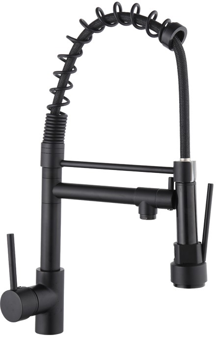 Technické dáta: Materiál: mosadz Povrchová úprava: čierna Hlavy: keramické Perlátor: Áno Typ výtoku: výsuvný Rozsah výtoku: 190 mm Výška: 490 mm Typ: Dvouruký Dvojhlavý faucet s prídavným kanálom pre filtrovanú pitnú vodu (GT) Ean: 5907709192966