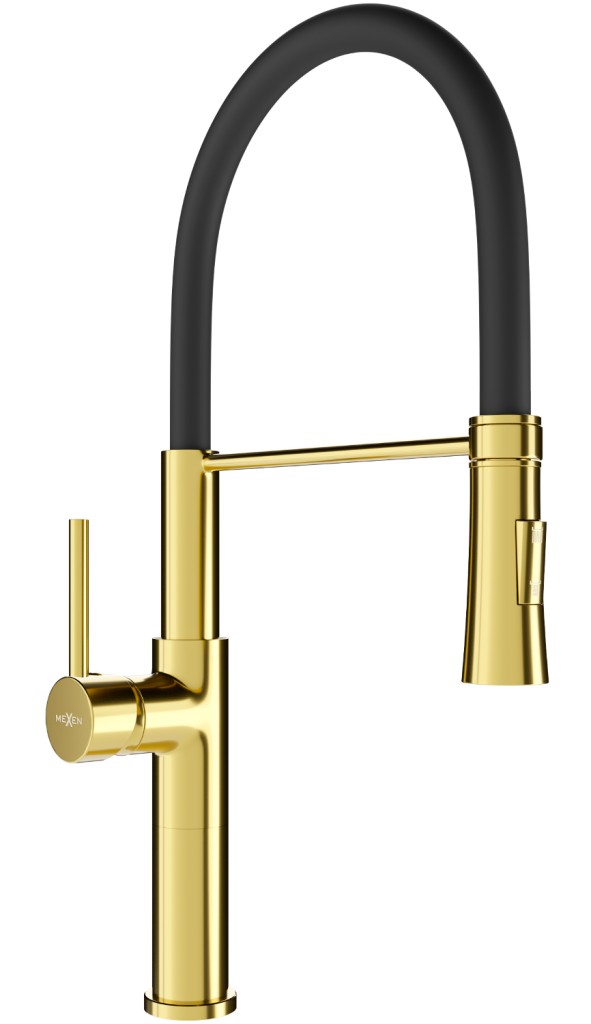 MEXEN/S MEXEN/S - Kevin granitový drez 1 s odkvapkávačom 586x458 mm, čierny/striebro metalík + zlatý sifón 6517581005-73-G