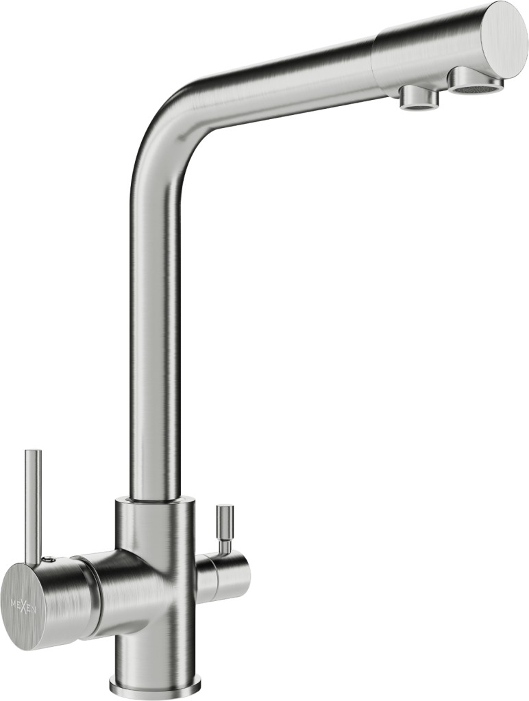 Technické dáta: Materiál: mosadz Dokončiť: Inox Hlavy: keramické Perlátor: Áno Rozsah výtoku: 235 mm Výška: 315 mm Typ: Dvouruký Dvojhlavý faucet s prídavným kanálom pre filtrovanú pitnú vodu (GT) Ean: 5907709193338