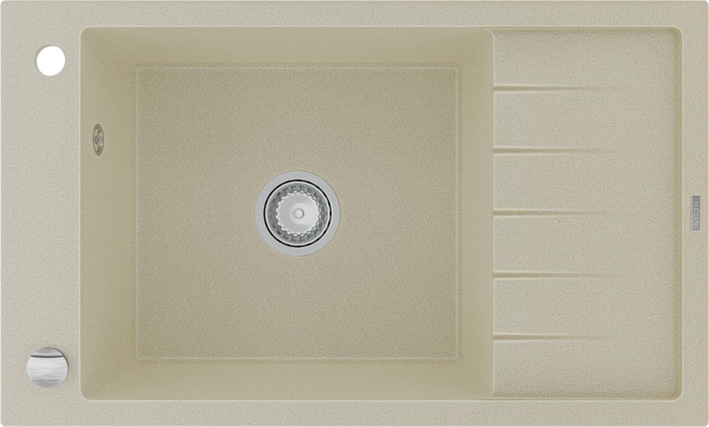 Technické dáta: Veľkosť: 795x480x200 mm Hĺbka komory: 190 mm Rozmery komory: 465x420 mm Priemer odtoku: ø90 mm Typ: 1 miska s krátkym odtokom Typ: Zapustené do dosky stola béžová farba Materiál: žula Prepadový otvor: Áno Závit: Áno Vrátane automatického sifónu Vysoká odolnosť proti poškriabaniu a zafarbenie Odolnosť proti tepelným šokom Ľahko čistiteľný povrch Jeden ďalší vyfrézovaný otvor pre vlastné dierovanie ø35 (GT) Ean: 5907709194496