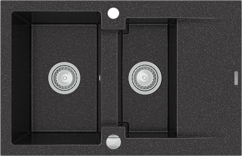 Technické dáta: Veľkosť: 737x475x177 mm Hĺbka komory: 167 mm (väčšie), 107 mm (menšia) Rozmery komory: 395x272 mm (väčšie), 375x182 mm (menšia) Priemer odtoku: ø90 mm Typ: 1,5 misy s krátkym odkvapkávačom Typ: Zapustené do dosky stola Farba: čierna škvrnitá Materiál: žula Prepadový otvor: Áno Závit: Áno Vrátane automatického sifónu Vysoká odolnosť proti poškriabaniu a zafarbenie Odolnosť proti tepelným šokom Ľahko čistiteľný povrch(GT) Ean: 5907709194212