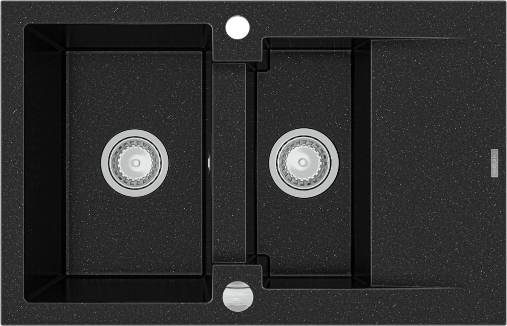 Technické dáta: Veľkosť: 737x475x177 mm Hĺbka komory: 167 mm (väčšie), 107 mm (menšia) Rozmery komory: 395x272 mm (väčšie), 375x182 mm (menšia) Priemer odtoku: ø90 mm Typ: 1,5 misy s krátkym odkvapkávačom Typ: Zapustené do dosky stola Farba: čierna / strieborná metalíza Materiál: žula Prepadový otvor: Áno Závit: Áno Vrátane automatického sifónu Vysoká odolnosť proti poškriabaniu a zafarbenie Odolnosť proti tepelným šokom Ľahko čistiteľný povrch(GT) Ean: 5907709194199