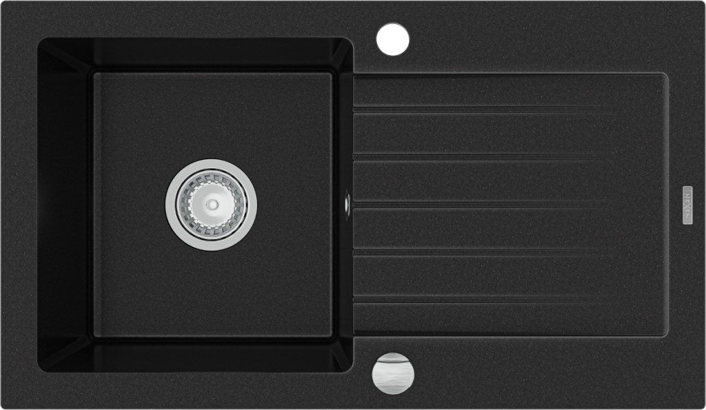 Technické dáta: Veľkosť: 752x436x161 mm Hĺbka komory: 151 mm Rozmery komory: 356x332 mm Priemer odtoku: ø90 mm Typ: 1 miska s odkvapkávačom Typ: Zapustené do dosky stola čierna farba Materiál: žula Prepadový otvor: Áno Závit: Áno Vrátane automatického sifónu Vysoká odolnosť proti poškriabaniu a zafarbenie Odolnosť proti tepelným šokom Ľahko čistiteľný povrch Dva ďalšie vyfrézované otvory pre vlastné dierovanie ø35 (GT) Ean: 5907709194465