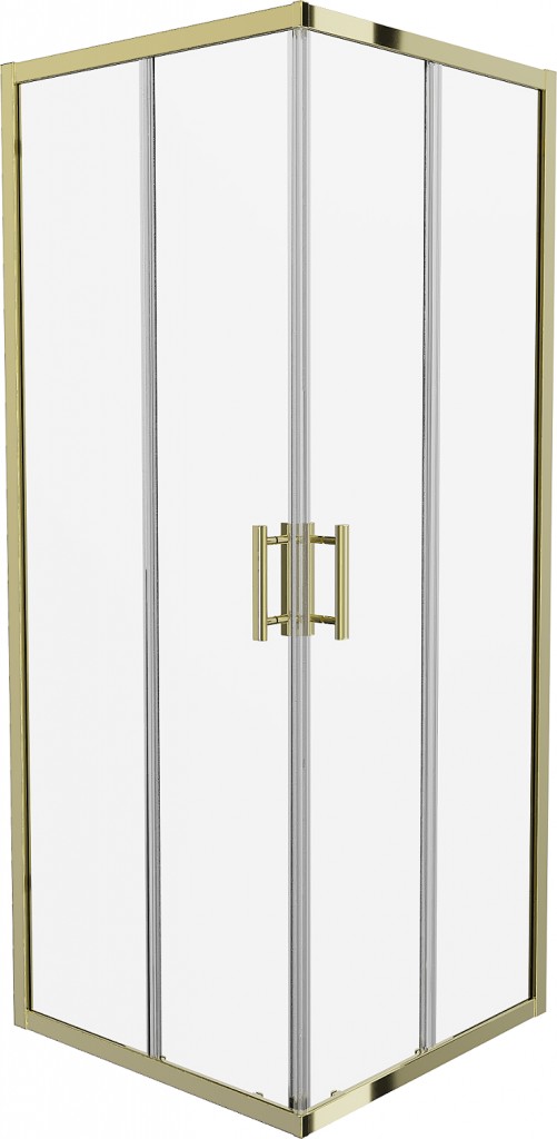MEXEN/S - Lunar L sprchový kút päťboký krídlový pravá 80 x 90, transparent, zlato kartáčovaná 831L-080P-090L-55-00-P