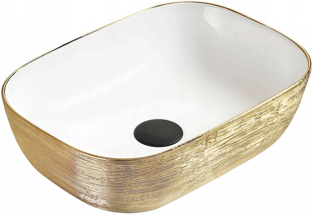 Technické dáta: Veľkosť: 45,5 x 32,5 x 13,5 cm Typ: Pultová doska Farba: biela / zlatá Prepadový otvor: nie Otvor pre batériu: Nie. Materiál: sanitárna keramika (GT) Ean: 5907709190900
