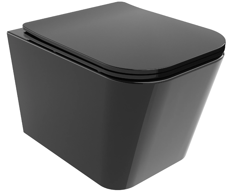 Technické dáta: Veľkosť: 53 x 36 x 37 cm Upevnenie: závesné Splachovací systém: Rimless (bez ráfika) čierna lesklá farba Materiál: sanitárna keramika Typ dosky: Pomalé zatváranie čierna farba Materiál: Duroplast Tenká verzia: Áno Jednoduché uvoľnenie: Áno Kovové závesy: Áno (GT) Ean: 5903163382646