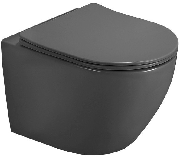 Technické dáta: Rozmer: 48x35,5x36 cm Montáž: Závesná Splachovací systém: Rimless (rimless) Farba: Tmavosivá matná Materiál: Sanitárna keramika Typ dosky: Pomalé zatváranie Farba: Svetlosivá matná Materiál: Duroplast Slim verzia: Áno Jednoduché uvoľnenie: Áno Kovové pánty: Áno (GT) Ean: 5907709175631
