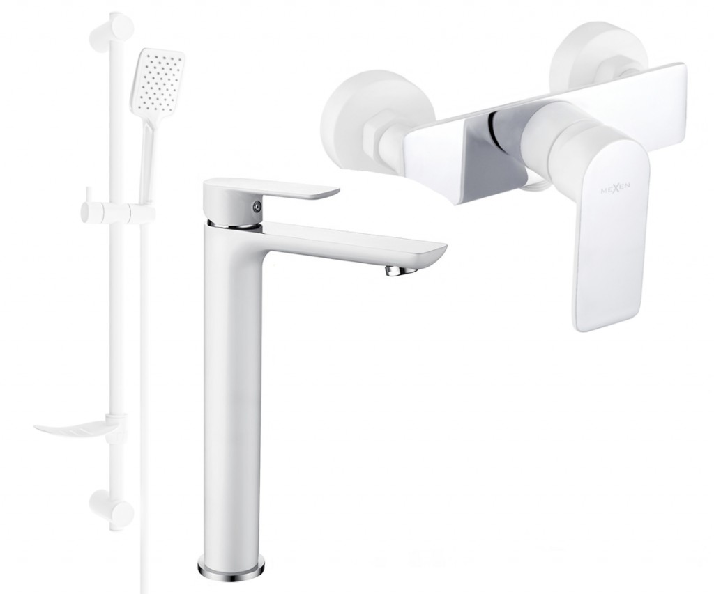Technické dáta: Materiál umývadlovej batérie: mosadz Povrchová úprava: biela / chróm Hlava: Keramická Perlátor: Áno Výška: 290 mm Rozsah výtoku: 200 mm Materiál vaňovej batérie: Mosadz Povrchová úprava: biela / chróm Hlava: Keramická Perlátor: Áno Rozsah výtoku: 140 mm Materiál hriadeľa: Nerezová oceľ, ABS Povrch tyče: Biela Výška: 800 mm Šírka lišty: 22 mm Vzdialenosť od steny: 160 mm Miska na mydlo Posuvný držiak na slúchadlo Nastaviteľné montážne držiaky Materiál slúchadiel: Plast Povrchová úprava slúchadiel: Biela Počet funkcií: 3 Materiál hadice: PVC Hadie prevedenie: Biela Dĺžka hadice: 150 cm Mosadzné hroty Hladký povrch uľahčuje údržbu Otočné hroty zabraňujú krúteniu Pružný materiál odolný proti rozťahovaniu a ohýbaniu (GT) Ean: 5907709183483