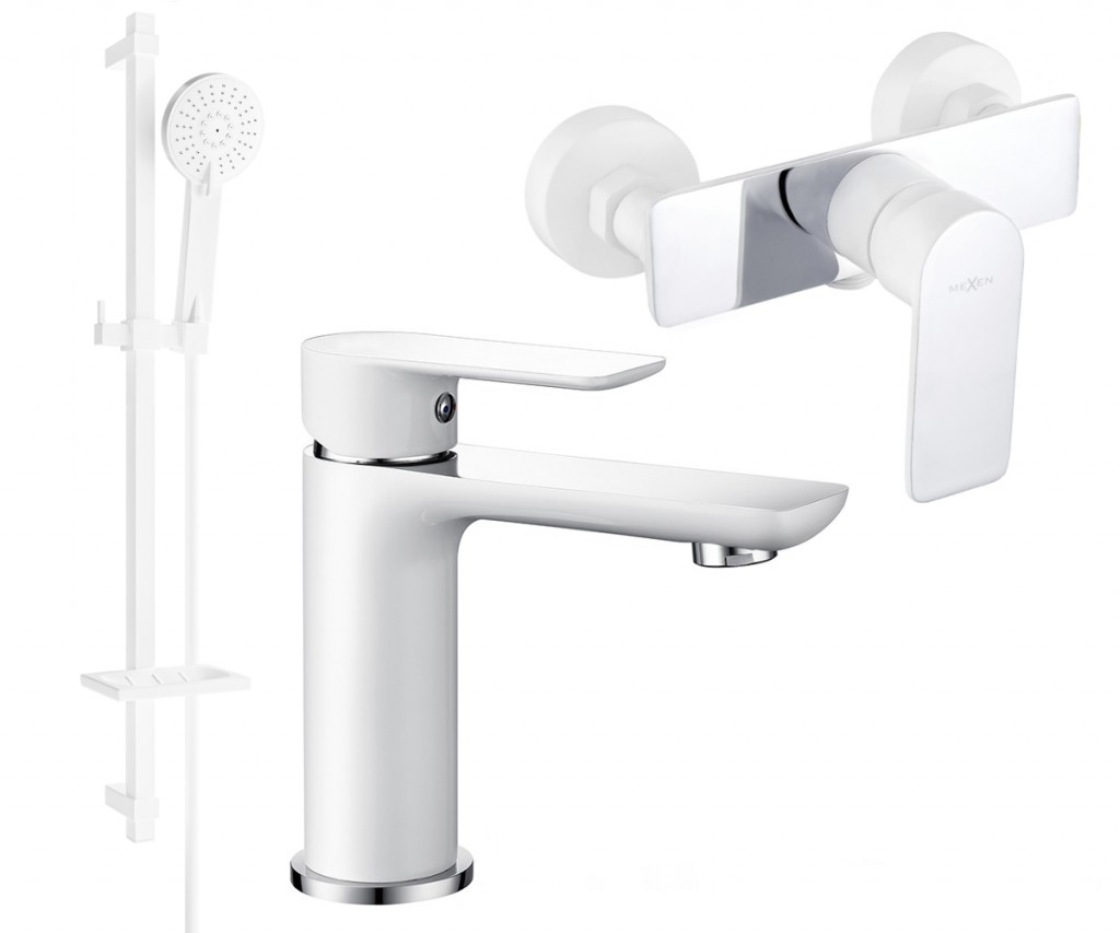 Technické dáta: Materiál umývadlovej batérie: mosadz Povrchová úprava: biela / chróm Hlava: Keramická Perlátor: Áno Výška: 160 mm Rozsah výtoku: 170 mm Materiál sprchovej batérie: mosadz Povrchová úprava: biela / chróm Hlava: Keramická Šírka: 170 mm Materiál hriadeľa: Nerezová oceľ, ABS Povrch tyče: Biela Výška: 800 mm Šírka lišty: 22 mm Vzdialenosť od steny: 160 mm Miska na mydlo Posuvný držiak na slúchadlo Nastaviteľné montážne držiaky Materiál slúchadiel: Plast Povrchová úprava slúchadiel: Biela Počet funkcií: 3 Materiál hadice: PVC Hadie prevedenie: Biela Dĺžka hadice: 150 cm Mosadzné hroty Hladký povrch uľahčuje údržbu Otočné hroty zabraňujú krúteniu Pružný materiál odolný proti rozťahovaniu a ohýbaniu (GT) Ean: 5907709182714