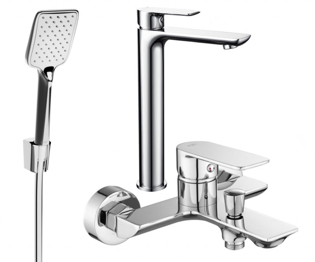 Technické dáta: Materiál umývadlovej batérie: mosadz Povrchová úprava: Chrome Hlava: Keramická Perlátor: Áno Výška: 290 mm Rozsah výtoku: 200 mm Materiál vaňovej batérie: mosadz Povrchová úprava: Chrome Hlava: Keramická Šírka: 170 mm Materiál slúchadiel: Plast Povrchová úprava slúchadiel: Chrome Počet funkcií: 1 Pripojenie: G 1/2" Výška slúchadiel: 225 mm Šírka hlavy: 80 mm Materiál rukoväte: Plast Povrchová úprava rukoväte: Chróm Typ montáže: Montáž na stenu Rozmery rukoväte: 60x44 mm Vzdialenosť od steny: 42 mm Materiál hadice: PVC Povrchová úprava hadice: Chróm Dĺžka hadice: 150 cm Pripojenie: 1/2" Mosadzné hroty Hladký povrch uľahčuje údržbu Otočné hroty zabraňujú krúteniu Pružný materiál odolný proti rozťahovaniu a ohýbaniu (GT) Ean: 5907709183681