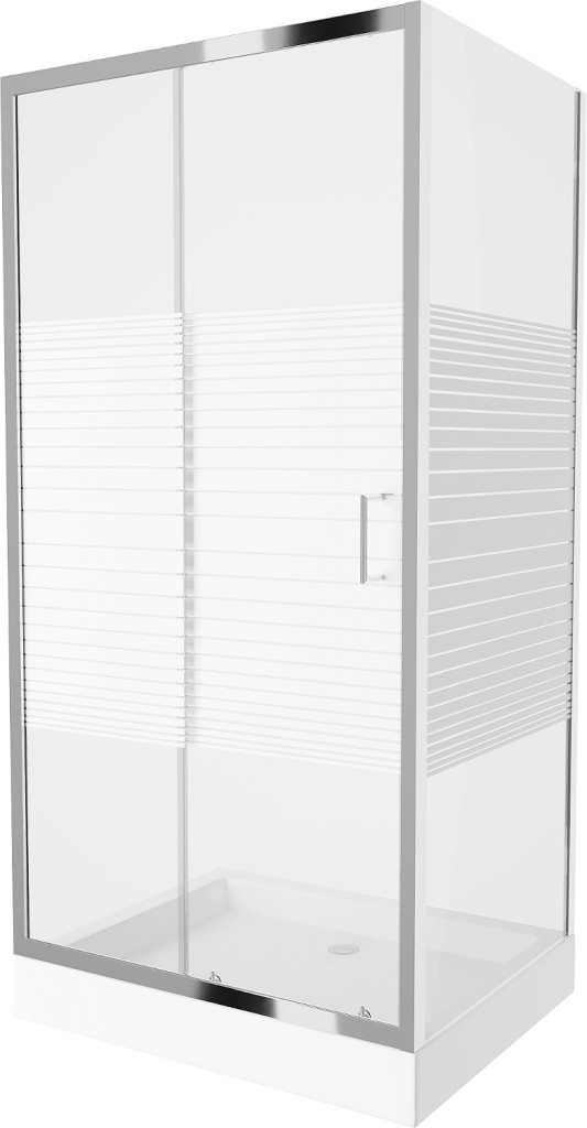 Technické údaje kabíny: Rozmer: 100x90 cm (dvere 100 cm, stena 90 cm) Výška: 190 cm Montáž: Univerzálna Vstup: Posuvné dvere Farba skla: pruhy Povrchová úprava: Chrome Typ skla: Tvrdené Hrúbka skla: 5 mm Profil: Hliník Obliečka na jednoduché čistenie: Áno Vyrovnanie nerovností steny: Áno Nastavenie šírky: Áno Možné namontovať na bazénik alebo dlaždice: Áno Kovová rukoväť Súprava tesnení na odvod vody Hliníkový prah dverí Technické údaje sprchovej vaničky: Rozmer: 100x80x14 cm biela farba Typ: Obdĺžnikový Materiál: Sanitárny akryl Vystužené dno Kompletný so sifónom vyčisteným zhora Priemer odtoku: 50 mm Povrchová úprava korku: chróm (GT) Ean: 5907709154025
