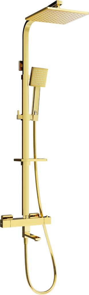 Technické dáta: Materiál stĺpa: nerezová oceľ, ABS Povrchová úprava stĺpika: Zlato Výška: 950-1270 mm Šírka stĺpika: 30 mm Vzdialenosť od steny: 400 mm Miska na mydlo Posuvný držiak slúchadlá Nastaviteľné montážne držiaky Materiál dažďovej sprchy: plast Dažďová sprcha: zlatá Veľkosť dažďovej sprchy: 200x200 mm Materiál slúchadiel: plast Povrchová úprava slúchadiel: zlatá Počet funkcií: 1 Materiál hadice: PVC Hadovi úprava: zlato Dĺžka hadice: 150 cm mosadzné hroty Hladký povrch uľahčuje udržiavanie čistoty Otočné hroty zabraňujú krúteniu Pružný materiál odolný proti roztiahnutiu a ohnutiu Materiál Faucet: Telo z mosadze Povrchová úprava baterie: zlatá Typ výtoku: mobilný Hlava: termostatická Pripojenie: G3 / 4 "(hore) a G1 / 2" (dole) Pripojenie Rostav: 150 mm Blokovanie horúcej vody pri 38 ° C (GT) Ean: 5907709142688