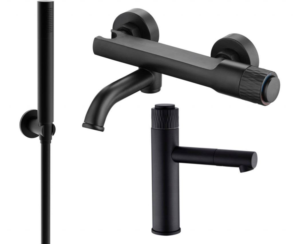 Materiál umývadlovej batérie: mosadz Povrchová úprava: čierna Hlava: Keramická Perlátor: Áno Výška: 202 mm Rozsah výtoku: 136 mm Materiál vaňovej batérie: mosadz Povrchová úprava: čierna Hlava: Keramická Perlátor: Áno Ovládanie teploty vody pomocou gombíka Zapínanie a vypínanie vodného prúdu pomocou tlačidla ON-OFF Materiál slúchadiel: mosadz Povrchová úprava slúchadiel: čierna Počet funkcií: 1 Pripojenie: G 1/2" Výška slúchadiel: 182 mm Šírka hlavy: 25 mm Materiál rukoväte: mosadz Povrchová úprava rukoväte: Čierna Typ montáže: Montáž na stenu Rozmery rozety: ø50 mm Vzdialenosť od steny: 55 mm Materiál hadice: PVC Hadie prevedenie: Čierna Dĺžka hadice: 150 cm Pripojenie: 1/2" Mosadzné hroty Hladký povrch uľahčuje údržbu Otočné hroty zabraňujú krúteniu Pružný materiál odolný proti rozťahovaniu a ohýbaniu (GT) Ean: 5907709184596