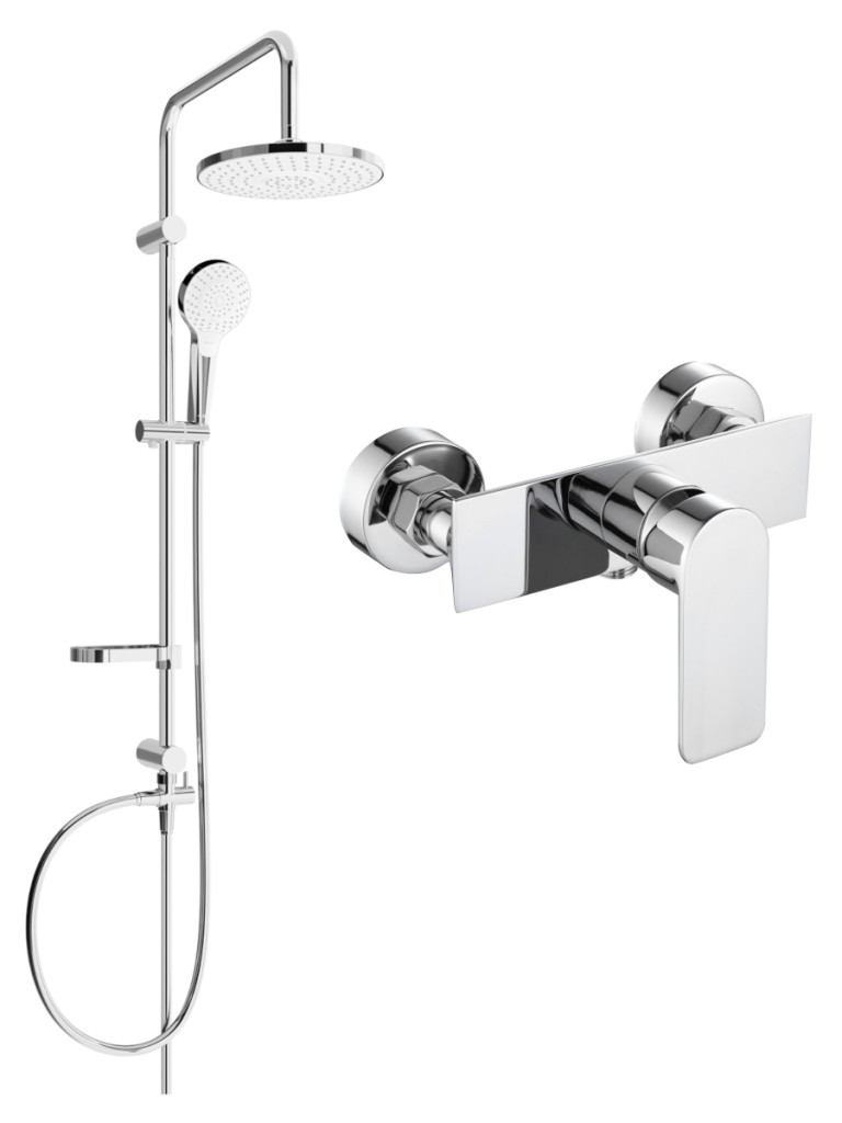 Technické dáta: Materiál stĺpika: Nerezová oceľ, ABS Povrchová úprava stĺpika: Chrome Výška: 950 mm Šírka stĺpika: 22 mm Vzdialenosť od steny: 380 mm Miska na mydlo Posuvný držiak na slúchadlo Nastaviteľné montážne držiaky Materiál dažďovej sprchy: Plast Povrchová úprava dažďovej sprchy: chróm / biela Rozmer dažďovej sprchy: ø225 mm Materiál slúchadiel: Plast Povrchová úprava slúchadiel: chróm / biela Počet funkcií: 3 Pripojenie: G 1/2" Výška slúchadla: 230 mm Rozmery hlavy: ø108 mm Materiál hadice: Plášť z nerezovej ocele Povrchová úprava hadice: Chróm Dĺžka hadice: 150 cm Pripojenie: 1/2" Mosadzné hroty Pružný materiál odolný proti roztiahnutiu a ohybu Materiál batérie: mosadz Povrchová úprava: Chrome Hlava: Keramická Šírka: 170 mm(GT) Ean: 5907709181885