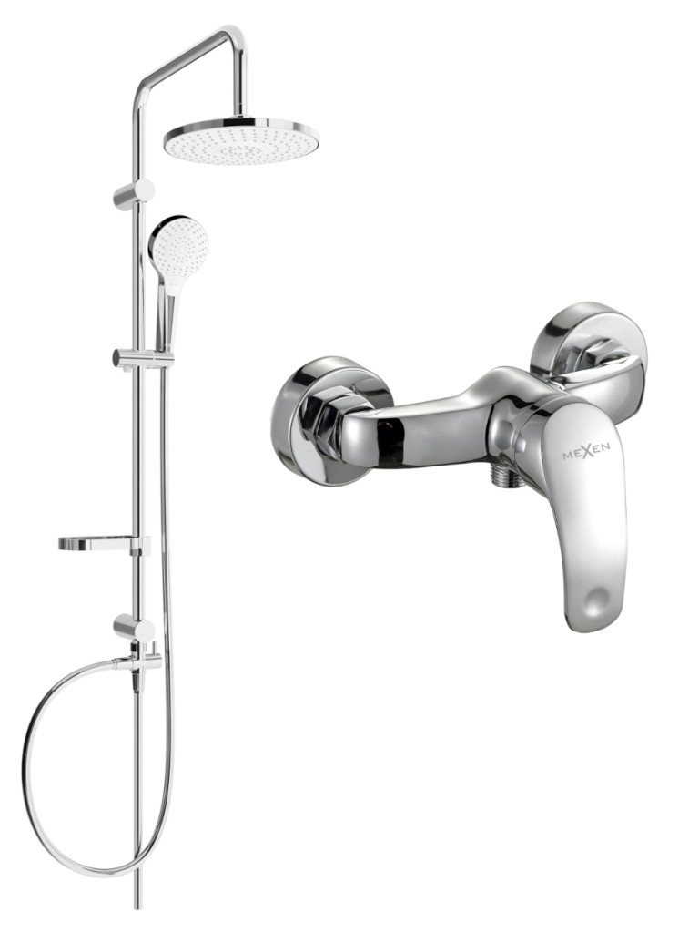 Technické dáta: Materiál stĺpika: Nerezová oceľ, ABS Povrchová úprava stĺpika: Chrome Výška: 950 mm Šírka stĺpika: 22 mm Vzdialenosť od steny: 380 mm Miska na mydlo Posuvný držiak na slúchadlo Nastaviteľné montážne držiaky Materiál dažďovej sprchy: Plast Povrchová úprava dažďovej sprchy: chróm / biela Rozmer dažďovej sprchy: ø225 mm Materiál slúchadiel: Plast Povrchová úprava slúchadiel: chróm / biela Počet funkcií: 3 Pripojenie: G 1/2" Výška slúchadla: 230 mm Rozmery hlavy: ø108 mm Materiál hadice: Plášť z nerezovej ocele Povrchová úprava hadice: Chróm Dĺžka hadice: 150 cm Pripojenie: 1/2" Mosadzné hroty Pružný materiál odolný proti rozťahovaniu a ohýbaniu Materiál batérie: mosadz Povrchová úprava: Chrome Hlava: Keramická Šírka: 170 mm (GT) Ean: 5907709182042