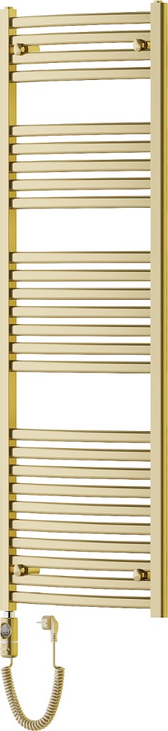 Technické dáta: Výška: 1500 mm Šírka: 500 mm Hĺbka: 54 mm Farba: Zlatá Materiál: oceľ Vykurovací výkon: 600W Počet vykurovacích tyčí: 26 Celková dĺžka ohrievača: 656 mm Dĺžka vykurovacieho telesa: 540 mm Dĺžka napájacieho kábla: 1,5m Prevádzkové napätie: 230V/50Hz Stupeň krytia: IP44 Dotykové ovládanie pomocou LED displeja Dodatočná ochrana proti chodu na sucho Vstavaný termostat udržuje požadovanú teplotu radiátora Vysoko kvalitný, odolný náter odolný proti korózii Pre správnu funkciu musí byť radiátor naplnený vodou alebo zmesou vody, napr. s glykolom Sada obsahuje: závesy, montážnu sadu a záslepky Funkcia radiátora: - Sensitive umožňuje nastaviť teplotu v rozmedzí 40 ° C-65 ° C - Comfort má možnosť sušenia, ktorá umožňuje nastaviť teplotu ohrevu na zvolenej hodinovej stupnici - Detská poistka umožňuje uzamknúť ovládač kúrenia(GT) Ean: 5905315234193