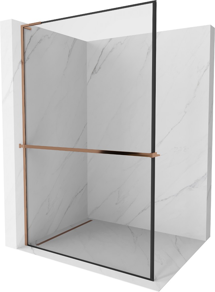 MEXEN/S - Kioto+ L Sprchová zástena WALK-IN s poličkou a držiakom uterákov 70 x 200, čierny vzor, ružové zlato 800-070-123-60-70