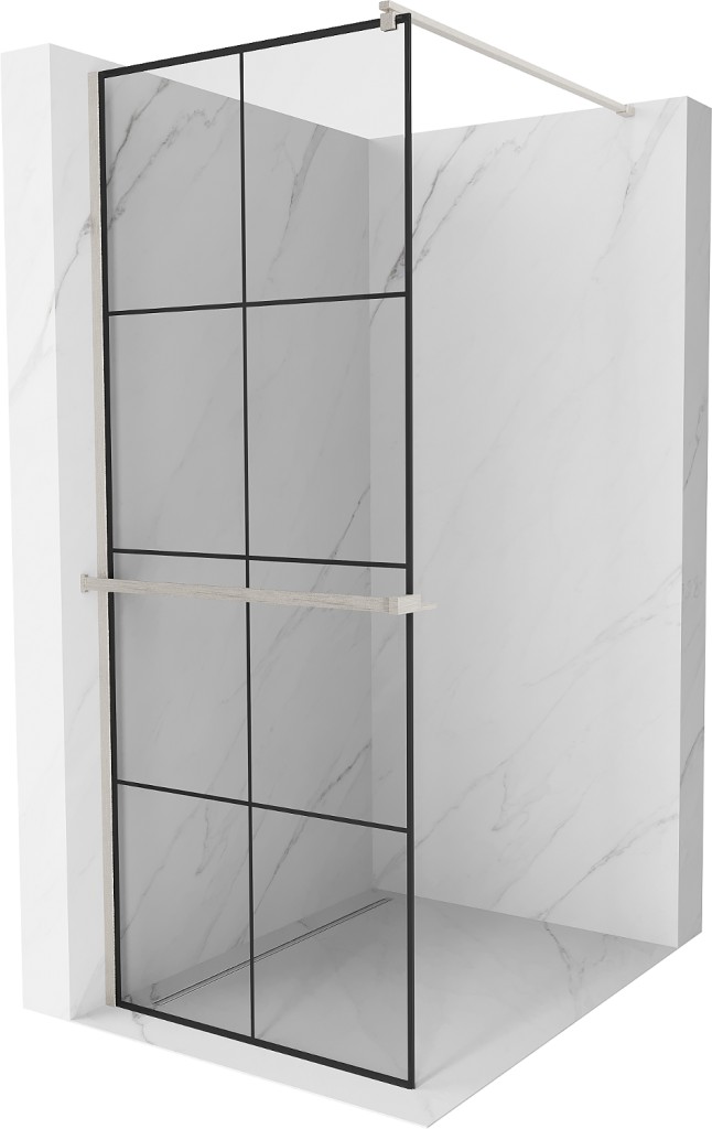 MEXEN/S - Next L vaňová zástena FIX 70 x 150, čierna vzor, nikel kartáčovaná 895-070-000-03-77-97
