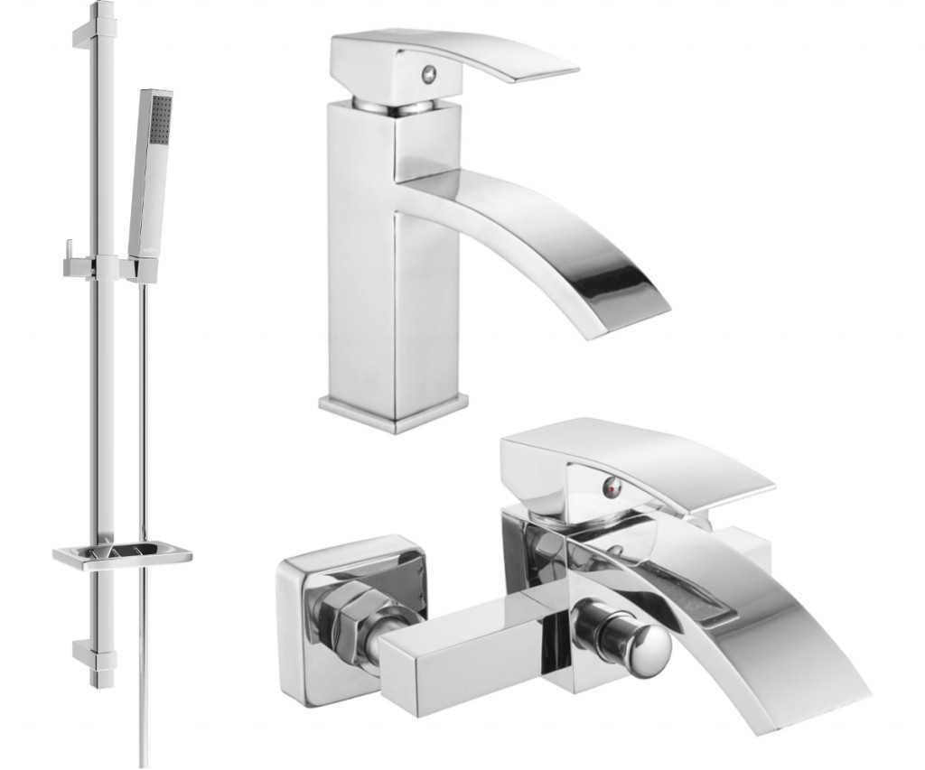 Technické dáta: Materiál umývadlovej batérie: mosadz Povrchová úprava: Chrome Hlava: Keramická Perlátor: Áno Výška: 183 mm Rozsah výtoku: 174 mm Materiál vaňovej batérie: Mosadz Povrchová úprava: Chrome Hlava: Keramická Perlátor: Nie. Rozsah výtoku: 180 mm Materiál hriadeľa: Nerezová oceľ, ABS Povrchová úprava tyče: Chrome Výška: 800 mm Šírka lišty: 22 mm Vzdialenosť od steny: 160 mm Miska na mydlo Posuvný držiak na slúchadlo Nastaviteľné montážne držiaky Materiál slúchadiel: Plast Povrchová úprava slúchadiel: Chrome Počet funkcií: 1 Výška slúchadla: 215 mm Šírka slúchadla: 30 mm Materiál hadice: PVC Povrchová úprava hadice: Chróm Dĺžka hadice: 150 cm Mosadzné hroty Hladký povrch uľahčuje údržbu Otočné hroty zabraňujú krúteniu Pružný materiál odolný proti rozťahovaniu a ohýbaniu (GT) Ean: 5907709184961